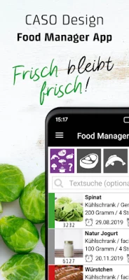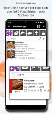 CASO Food Manager App nodrošina ilgtspējīgu pārtikas pārvaldību un pilnīgu pārskatu. Pārvaldiet ledusskapja un saldētavas saturu, vienmēr redzot pieejamos krājumus. Lietotne arhivē produktus un individuāli aprēķina derīguma termiņus, ņemot vērā uzglabāšanas veidu un vietu.