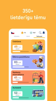 FunEasyLearn metodika balstās uz rūpīgi izstrādātu stratēģiju, ko veidojuši valodnieki un pedagogi. Tā integrē alfabēta apguvi ar lasīšanas noteikumiem, plašu vārdu krājumu un praktiskām frāzēm vienuviet. Jūsu rīcībā ir vairāk nekā 6000 rūpīgi atlasītu čehu valodas vārdu, sākot no visbiežāk lietotajiem lietvārdiem un darbības vārdiem, kas sadalīti 7 līmeņos un 200 tēmās. Papildus tam, vairāk nekā 5000 noderīgu frāžu ikdienas saziņai un ceļojumiem, sagrupētas 10 līmeņos un 120 tēmās, nodrošinot, ka esat gatavs jebkurai situācijai.