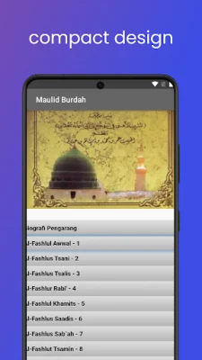 Ienāciet garīgās gaismas un sirds miera pasaulē ar Kitab Rawi Maulid Burdah – lietotni, kas dāvā jums piekļuvi izcilam islāma dzejas šedevram. Šī lietotne piedāvā Burdah Qasidah, cildenu poēzijas kolekciju, kuru sarakstījis cienījamais imams Al Busiri. Tā ir veltīta pravieša Muhameda s.a.w. godināšanai, izsakot dziļu mīlestību un cieņu caur tās melodiskajiem vārdiem.